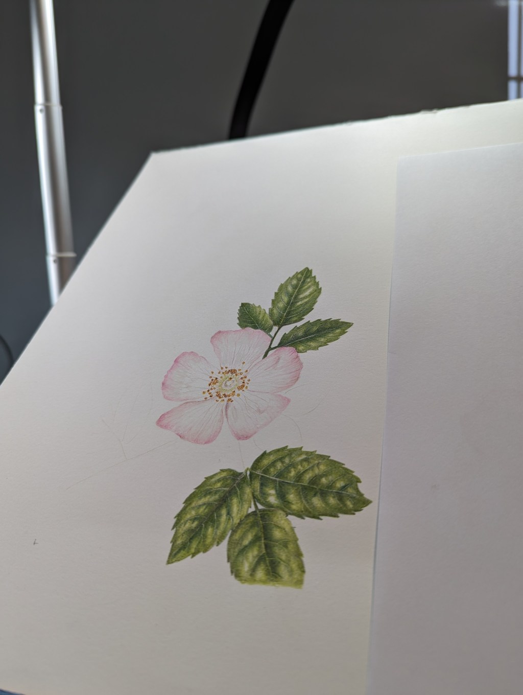 The latest on the drawing board is the dog rose. Which is a bit of a wild rambling plant which can vary quite considerably in colour. I found this specimen over near Jurby, but they are common throughout the island.